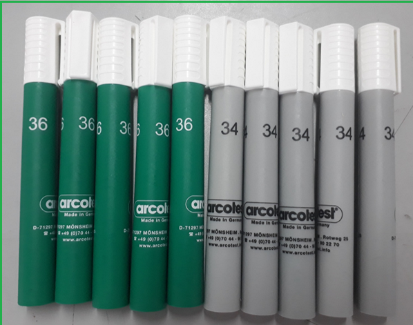 - Bút Arcotest có thể đo chính xác việc sức căng bề mặt của màng nhựa có đạt được giá trị có bút thử hay không